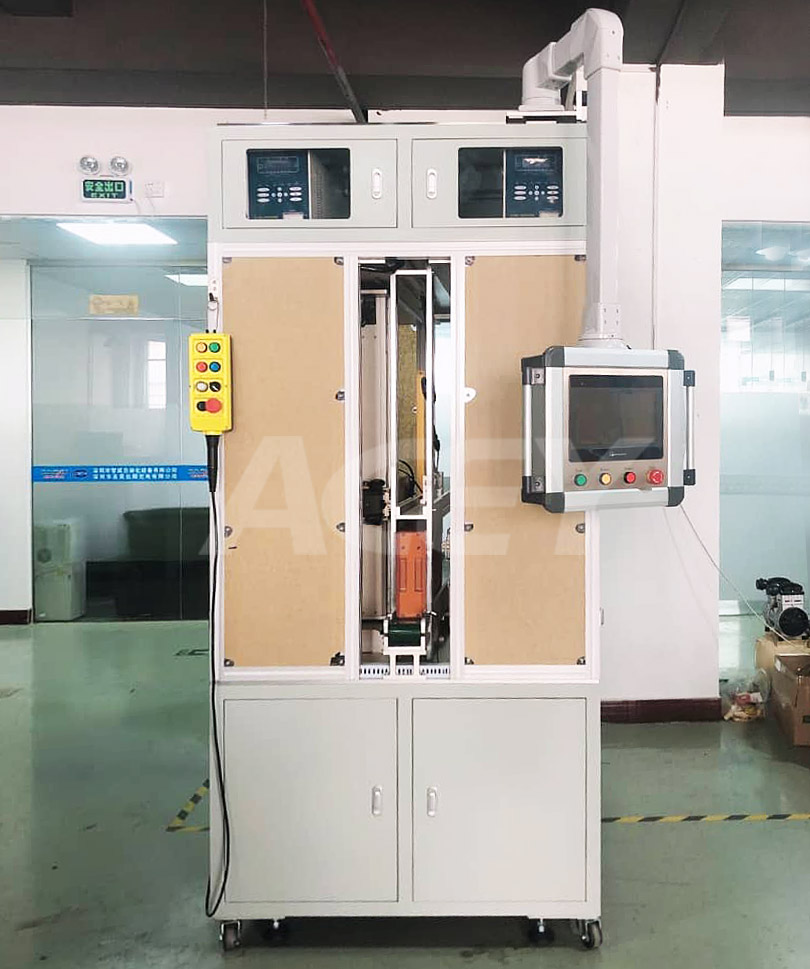 ACEY-D300 viene utilizzato per la saldatura a punti automatica del pacco batteria da 18650,21700,26650,32650,32700 cilindri, può saldare entrambi i lati insieme ad alta velocità e buon effetto e l'interfaccia uomo-macchina altamente automatizzata lo rende facile da usare.