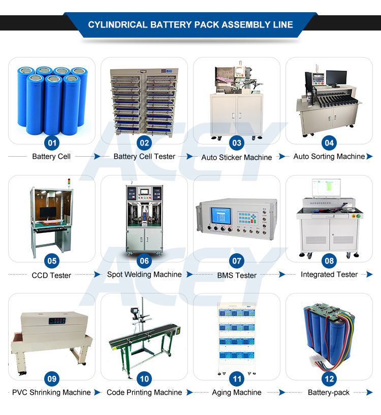 Acey . ha un set di soluzione per la batteria al litio Pack, è impegnato a fornire Linea cilindrica delle cellulePer aiutare a migliorare il pacco batteria assemble efficiente.