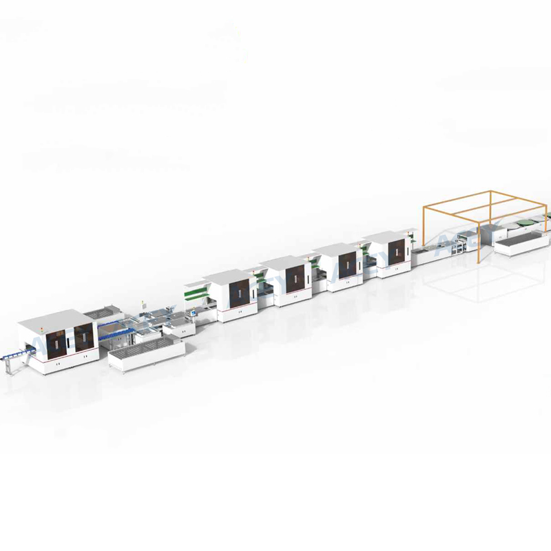 Questa linea di produzione personalizzata non standard viene utilizzata principalmente per completare le funzioni di smistamento, saldatura, test e assemblaggio dei moduli di batterie al litio a guscio quadrato. La linea comprende: caricamento manuale, scansione automatica del codice, test OCV, scarica automatica NG, cache delle celle della batteria, impilamento e raggruppamento manuale, gestione manuale dei moduli in scatole, scansione ed etichettatura manuale del codice, rilevamento della polarità e indirizzamento dei terminali, terminale pulizia laser, posizionamento manuale del pezzo di connessione, saldatura laser, test EOL, trasferimento del modulo a sbalzo, assemblaggio manuale del pacco, sollevamento fuori linea, processo di assemblaggio di riflusso del carrello con sollevamento manuale del vassoio degli utensili. Raccolta dati in ciascuna stazione, caricamento della porta riservata per la connessione al sistema MES.